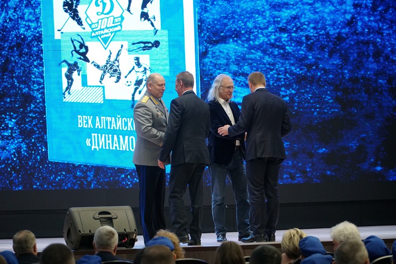 Открыл творческий вечер Председатель Алтайской краевой организации Общества «Динамо», начальник Управления ФСБ России по Алтайскому краю генерал-майор Плотников Роман Павлович. Участников мероприятия приветствовали: Губернатор Алтайского края, Председатель Правительства Алтайского края Виктор Петрович Томенко, Председатель Алтайского краевого Законодательного Собрания Александр Алексеевич Романенко, главный федеральный инспектор по Алтайскому краю аппарата Полномочного представителя Президента Российской Федерации в Сибирском федеральном округе Юрий Станиславович Земский. Кульминационным моментом творческого вечера стало вручение первых экземпляров книги «Век алтайского «Динамо» Губернатору Алтайского края и главе города Барнаула. Для этого на сцену были приглашены Председатель Алтайской краевой организации Общества «Динамо» Роман Плотников и автор книги Сергей Тепляков.